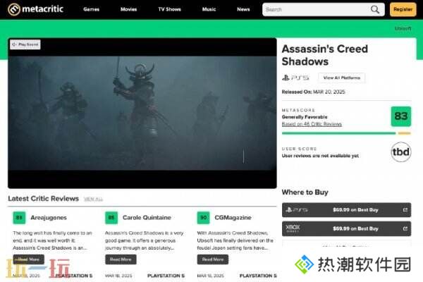 育碧最新的《刺客信条:影》全球媒体评分现已解禁,截止发稿时,IGN和GameSpot两家均为本作给出8分的评价,目前游戏在Metacritic上的均分为83分(基于PS5平台,共收录46家媒体)。