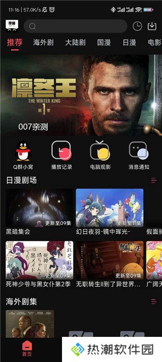 1、打开软件进入首页,顶部栏汇集了海量的影视类型,包括电影、电视剧、综艺、动漫等等。