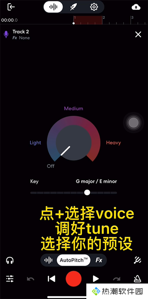 2、进入之后点“+”选择“voice”调好“tune”。