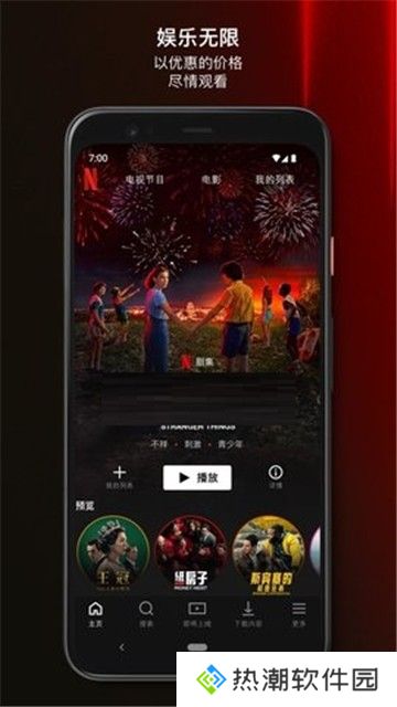 奈飞中文电影站说明1、Netflix app持续更新电视节目和电影,浏览标题或搜索收藏夹。