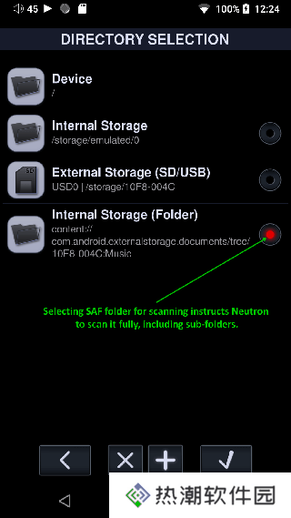 5、这里是外部SD中的/Music 文件夹已添加到Neutron,您可以选择它进行扫描,也可以点击并浏览其子文件夹并选择它们进行扫描。