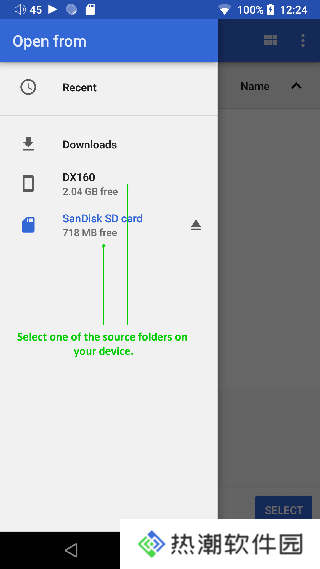 3、操作系统将显示允许选择文件夹并授予Neutron访问权限的对话框,您可以通过进入文件夹并按下底部的选择按钮来选择内部存储或 SD。