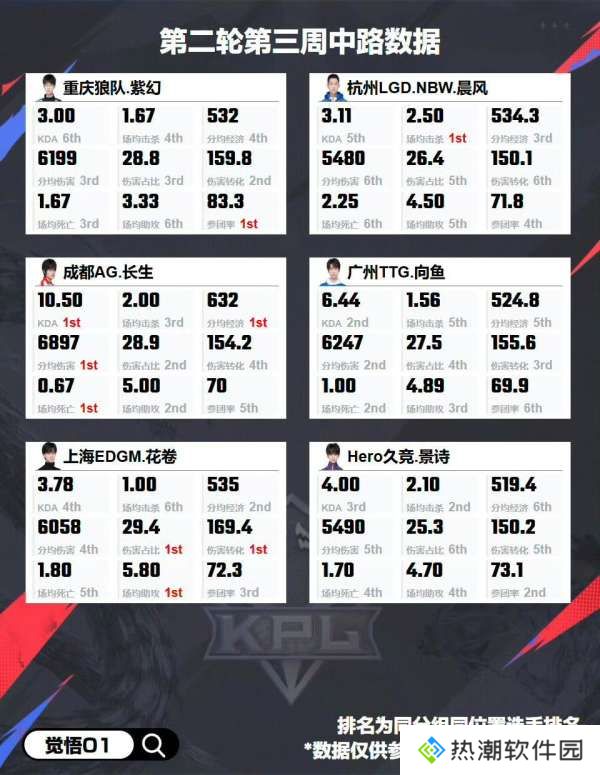 第二轮第二周S组各位置数据:打野小胖击杀第一,中单紫幻KDA最低,你怎么看?