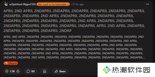 这里讨论的帖子提到了4月2日,届时将举办一场庆祝即将推出的任天堂Switch 2主机的后续直面会。这种期待表现得很隐晦,但我猜他们把希望寄托在了这次直面会上——从他们像囚犯在无情的石墙上划刻一样,不断对自己念叨“4月2日 4月2日 4月2日 4月2日”的方式就能看出来。